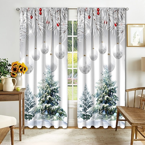 Tende natalizie, stampa digitale 3D, tende per finestre, pannelli decorativi festivi per soggiorno, camera da letto, decorazioni per la casa, set di tende in tessuto morbido