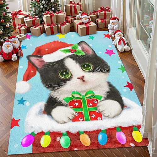 tappeto natalizio a forma di gatto, in cashmere sintetico da 350 g, tappeto regalo, grazioso tappeto natalizio per l'arredamento del soggiorno e della camera da letto, 5x7 piedi, tuxedocatinchimney di