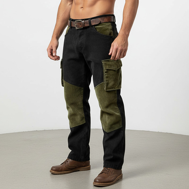 Men's Cargo Pants Trousers Corduroy Pants Faux Suede Pants Casual Pants Pocket Elastic Waist Multi Pocket Plain Comfort Soft Full Length Casual Daily Outdoor Vacation Fashion Black Navy Blue Inelastic