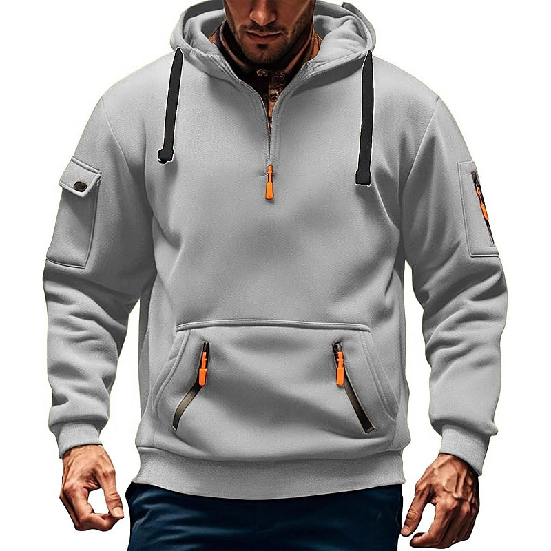 Men's Hoodie Quarter Zip Hoodie Fleece Hoodie Black White Navy Blue Khaki Light Grey Hooded Plain Patchwork Quarter Zip Sports Outdoor Casual Daily Streetwear Cool Sportswear Fall Winter Clothing