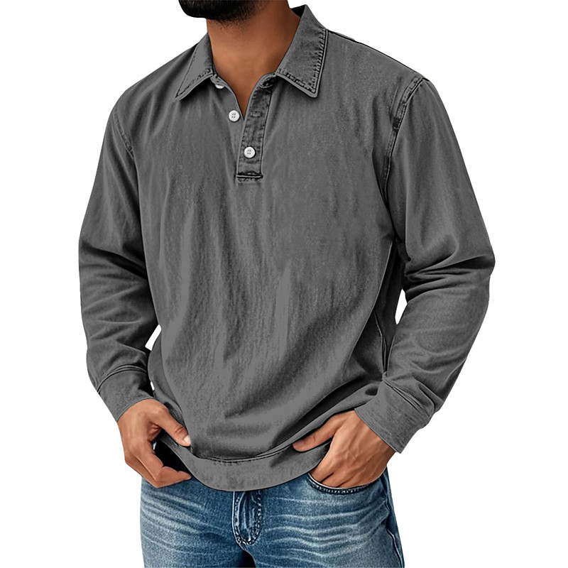 Men's Vintage Shirt Cotton Polo Shirt Business Casual Lapel Classic Long Sleeve Vintage Fashion Solid Color Plain Vintage Style Washed Fall Winter All Seasons Loose Fit Black Brown Pink Light Green