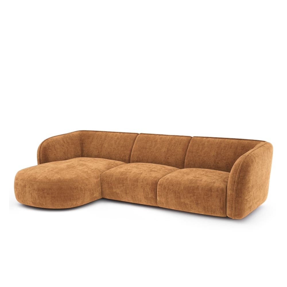 Divano angolare sinistro 5 posti velluto goffrato caramello