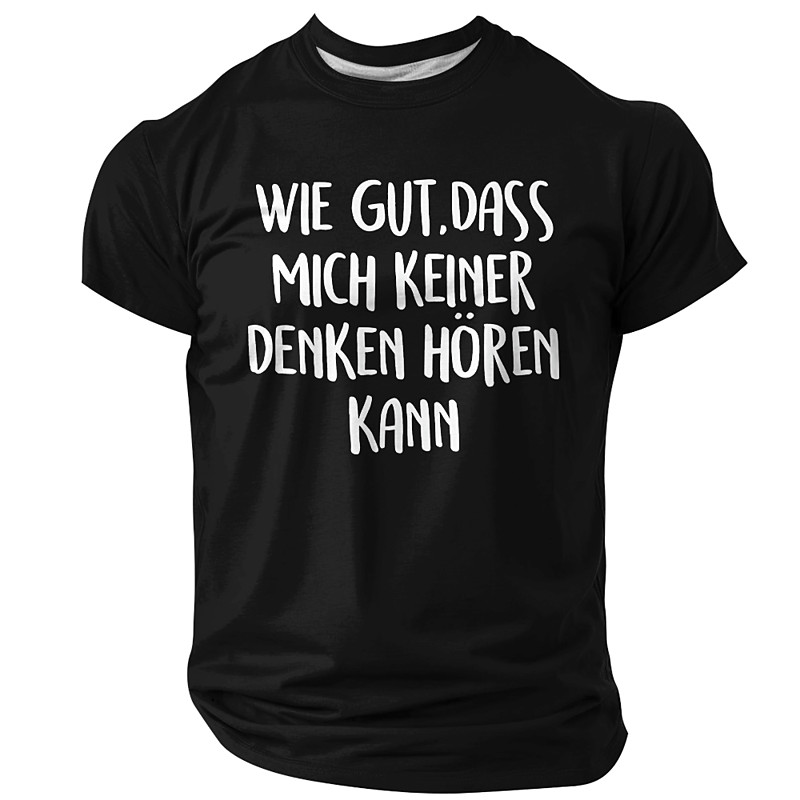 Men's Funny German Quote Graphic T-Shirt: 'Wie gut, dass mich keiner denken hören kann' (Good thing no one can hear what I'm thinking) Lifestyle Tee