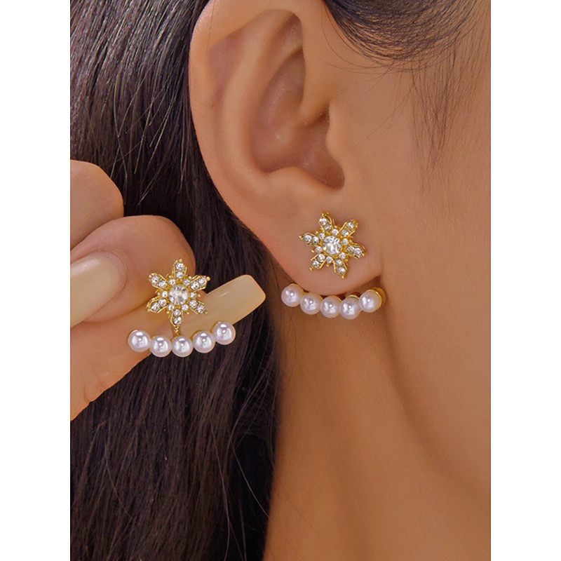 Women's Christmas Snowflake Earrings – Alloy and Faux Pearl Materials, Festive Red, Green, and Clear Stones, Perfect for Holiday Parties and Gifts