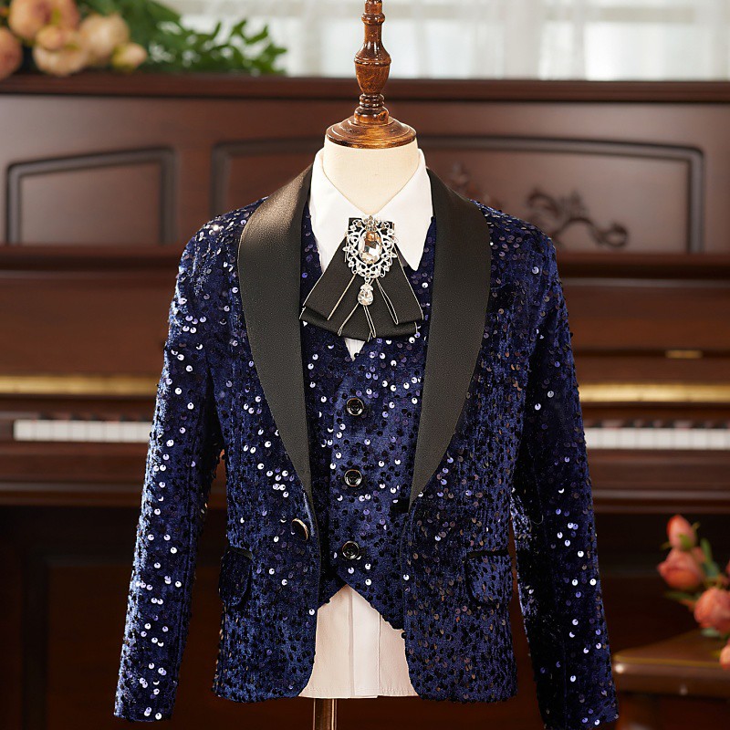 4 Pieces Ring Bearer Suit Boys' Kids Suit Blazer Vest Pants Tie Boy's Formal Suit Casual Outdoor Party Fashion Cool Basic Solid Color Sequins Pocket Buttons Blue Black White Polyester