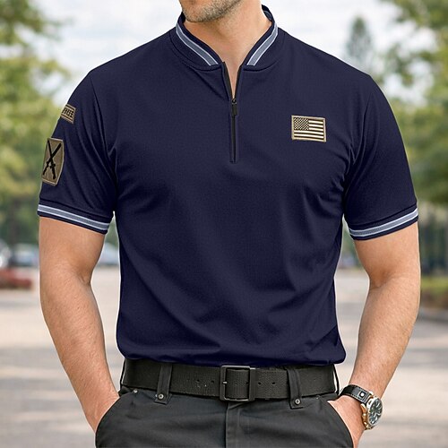 Per uomo Magliette Polo a Nido d'Ape Polo con zip Casuale Fitness Bavero Zip a un quarto Manica Corta Moda Muscolo Tinta unica Semplice Cerniera Estate Primavera Vestibilità su misura Nero Blu marino