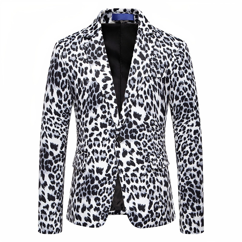 Men's Blazer Casual Party Performance Pocket Animals Bold All Seasons POLY Leopard Leopard Print Pocket Leopard Print Fashion Single Breasted One-button Blazer White Yellow