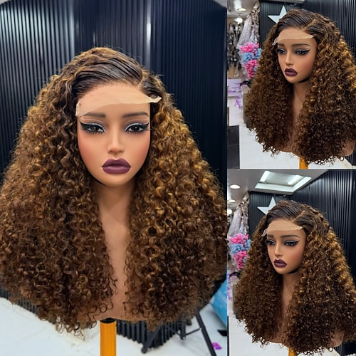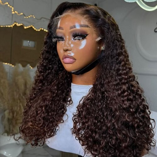 Capelli umani 5x5 Chiusura 13x4 Fronte in Pizzo Parrucca Riga Libera Capelli brasiliani Riccio Marrone Castano ramato Parrucca 150% 180% Densità dei capelli con Capelli di Bambino Capelli schiariti