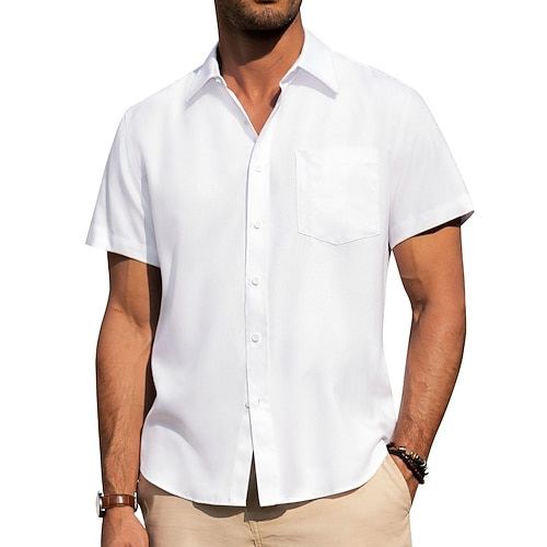 Per uomo Camicia Camicia Estiva Camicia casual Camicia da Spiaggia Camicia con Bottoni Nero Bianco Borgogna Verde militare Albicocca Manica Corta Semplice Bavero Quotidiano Vacanza Abbigliamento Moda