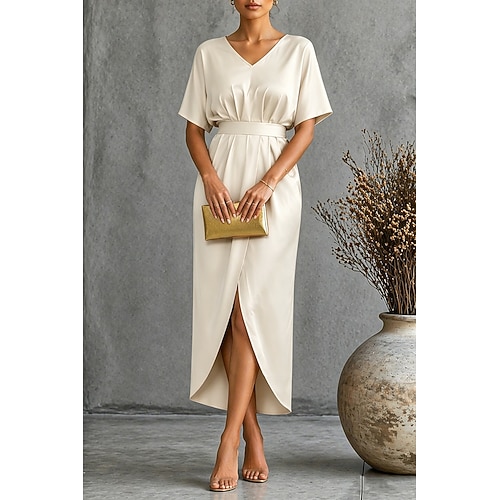 Per donna Abito Midi Abito in Raso Vestito da Festa Abito da Cocktail Elegante Moderno Festa serale Feste Vestibilità regolare Semplice Manica Corta Scollo a V Nero Giallo Blu Reale Verde scuro