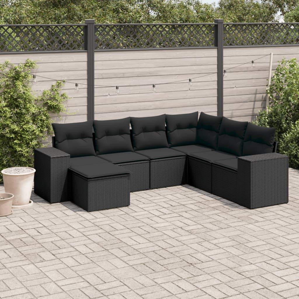 Sofasæt til haven 7 dele med hynder polyrattan sort