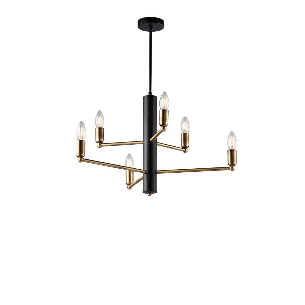 Lampadario fatto a mano 6 luci ferro laccato nero e ottone spazzolato