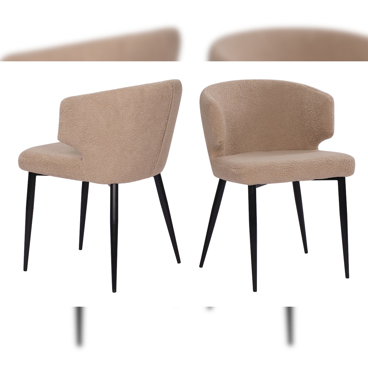SIT Möbel 2er-Set Armlehnstuhl | Bezug Teddyfell | Gestell Metall | B 63 x T 62 x H 81 cm | taupe – schwarz