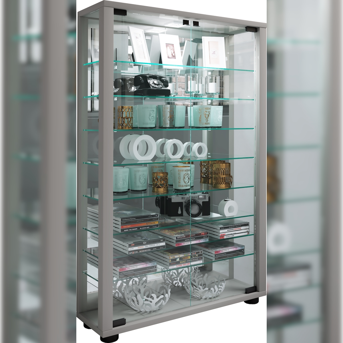 VCM Standvitrine Lumo Silber H. 91 x B. 59 x T. 18 cm
