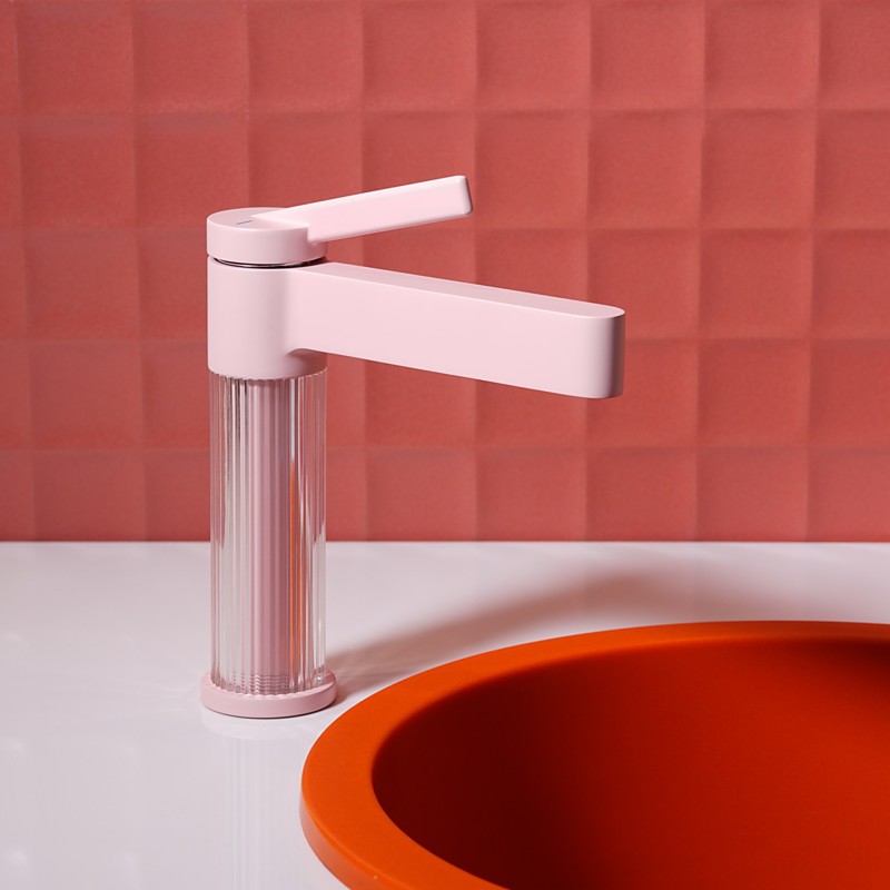 Bathroom Sink Faucet Waterfall Spout, Brass Mixer Basin Taps, Single Handle One Hole Bath Taps Painted Finishes Tall Body Modern Style