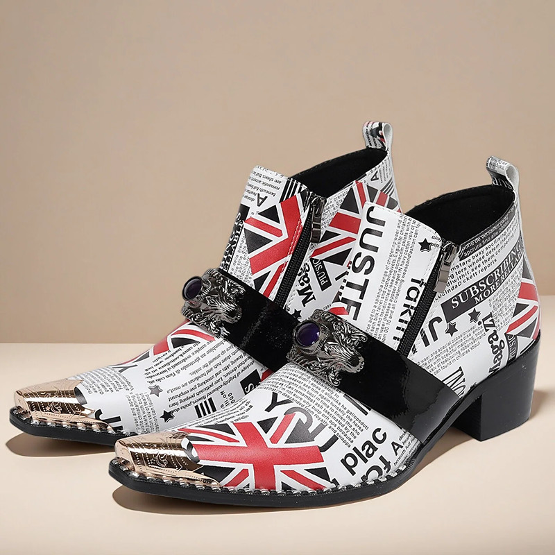 Men's Union Jack Print Ankle Boots - Fashion-Forward Boots with Bold British Flag Design, Ideal for Casual Outings and Statement Style