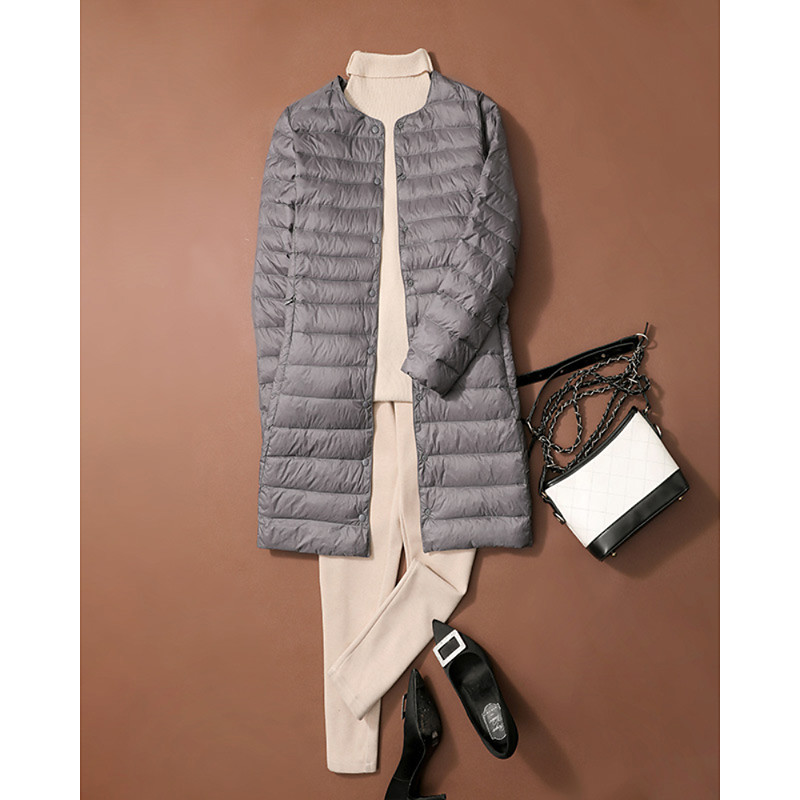 Women's Down Jacket Coat Warm Comfortable Buttons Casual Plain Outdoor Vacation Street Single Breasted Long Crewneck Regular Fit Long Sleeve Outerwear Black White Pink Fall Winter