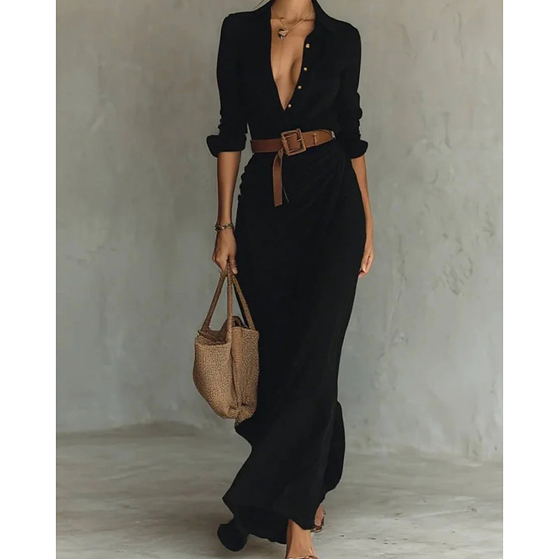 Women's Long Dress Maxi Dress Shirt Dress Modern Daily Outdoor Going out Regular Fit Plain Long Sleeve Shirt Collar Black White Navy Blue Khaki Spring Fall