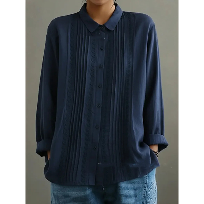 Women's Shirt Solid Color Plain Elegant Bohemia Vintage Long Sleeve Long Tops Lace Blue White Yellow Navy Blue Light Purple Summer Spring