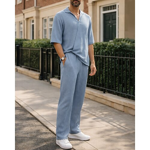 Herren Trainingsanzug Jogginganzug Trainingsanzüge Kordelzug 2 teilig Einfarbig Laufshirt mit Laufhose Sportbekleidungsset Sommer Frühling Schwarz Braun Fitnesstraining Leger Joggen