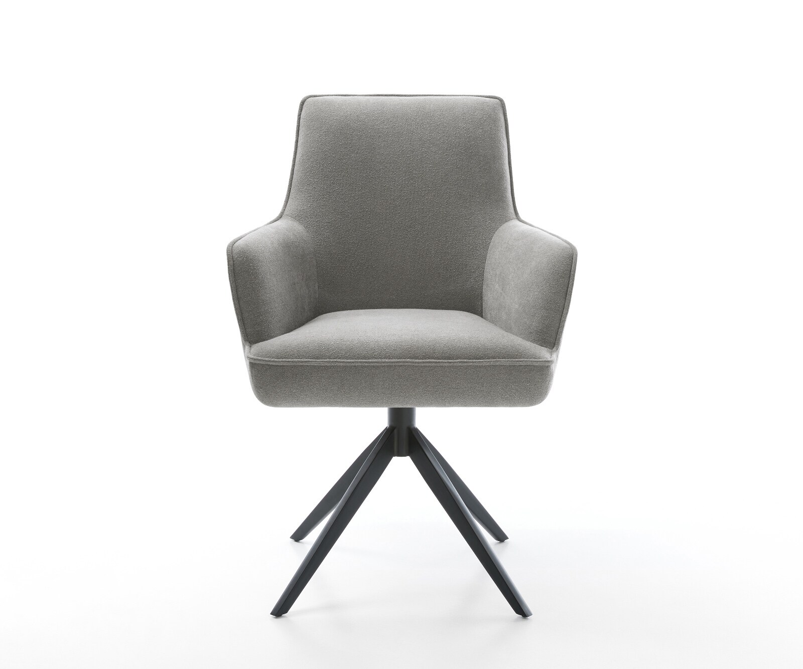 DELIFE Draaistoel Heira-Flex met armleuning zachte stof met structuur grijs kruisframe breed zwart 360° draaibaar rocker-functie pocketveer kern