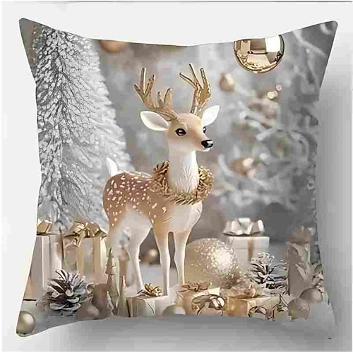 federe natalizie, cuscini decorativi con stampa di pupazzi di neve, renne e casette di neve, cuscini decorativi natalizi in bianco e argento per divano, camera da letto, soggiorno, decorazioni