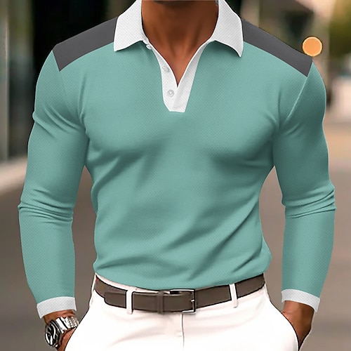 Per uomo Blocco di colori Polo Manica Lunga Magliette polo Bavero Casual All'aperto Athleisure Abbigliamento quotidiano Bottoni Primavera Autunno Blu Nero Blu marino