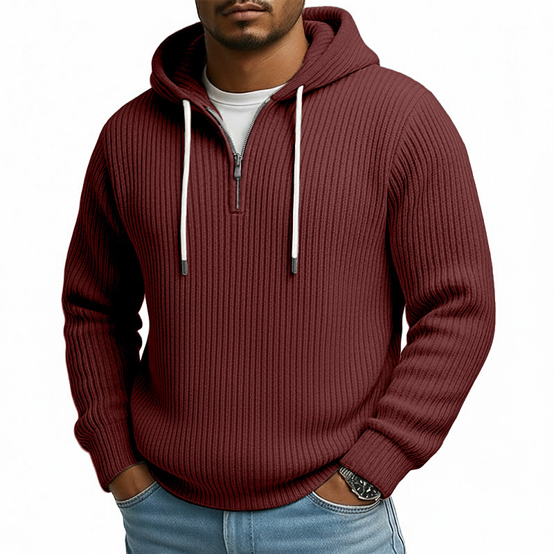Men's Hoodie Corduroy Pullover Quarter Zip Hoodie Wine Red Black White Light Green Navy Blue Hooded Plain Zip Up Textured Casual Daily Sports Outdoor Polyester Streetwear Cool Sportswear Spring