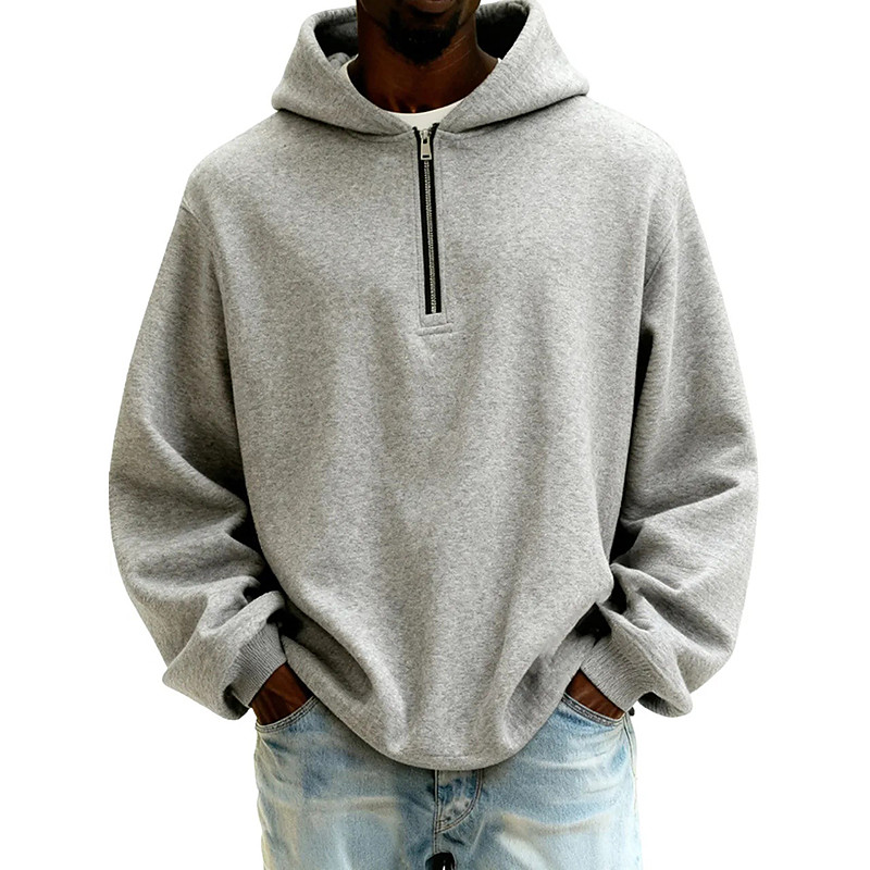 Men's Hoodie Quarter Zip Hoodie Tactical Hoodie BlackLight Gray KhakiBlack Light GrayBlue Navy BlueBlack Dark GrayLight Gray Hooded Plain Zipper Sports Outdoor Casual Daily Streetwear Cool
