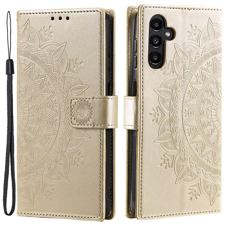 Samsung Galaxy A35 5G Fodral Mandala Mönster PU Läder - Guld