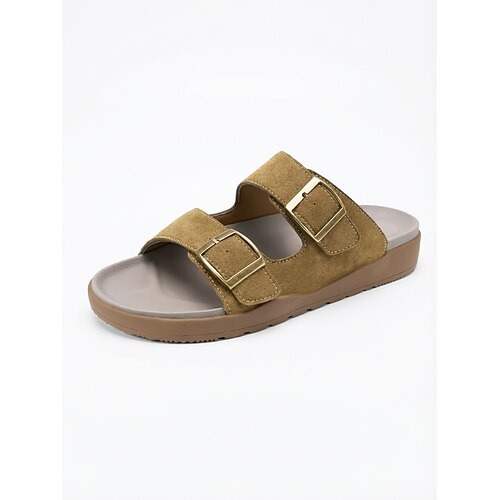 Sandali da uomo beige con doppia fibbia, a punta aperta, casual, estivi, leggeri e comodi, ideali per vacanze al mare, resort, viaggi, relax in piscina e per l'uso quotidiano nelle giornate calde.
