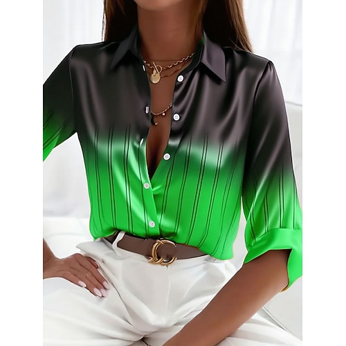 Camicia da donna Elegante Top Formale Camicia da lavoro Grafica Geometrica Elegante Stile Base Manica Lunga Collo Lavoro Feste Sera Abbigliamento Quotidiano Glitter Giallo Fucsia Arancione Verde
