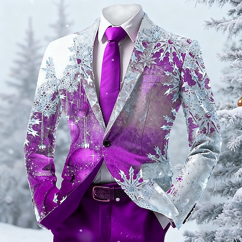Natale Per uomo Fiocco di neve Giacca blazer Confortevole Artistico Casual Abbigliamento da sera Quotidiano Festival Stampa 3D Bottoni Primavera Autunno Inverno Dentellato Manica Lunga Nero Rosso Blu