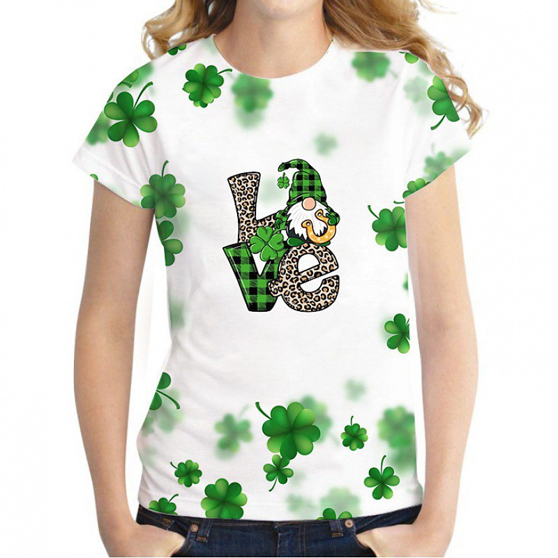 Women's T shirt Tee Shamrock St.Patrick's Day Casual Grass Green White Light Green Print Short Sleeve Fashion Round Neck Regular Fit Spring Summer