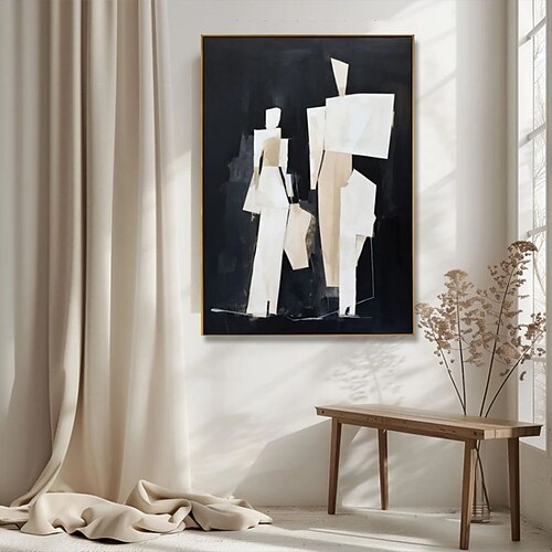 dipinto a olio fatto a mano su tela, decorazione da parete, figure astratte in bianco e nero, per arredamento di lusso, dipinto appeso con cornice allungata/dipinto arrotolato senza cornice