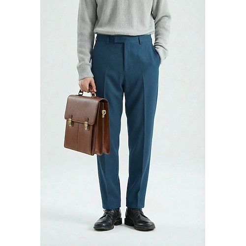 Uomo Cotone Lino Pantaloni Eleganti Affari Ufficio Formale Leggero Classico Nero Blu marino scuro Blu oceano Primavera Estate Pantaloni Tinta unica Vestibilità su misura Lungo Inelastico