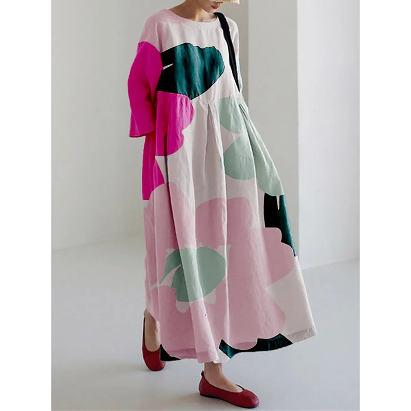 Women's Floral Pocket Print Crew Neck Long Dress Maxi Dress Daily Vacation Short Sleeve Fall Winter