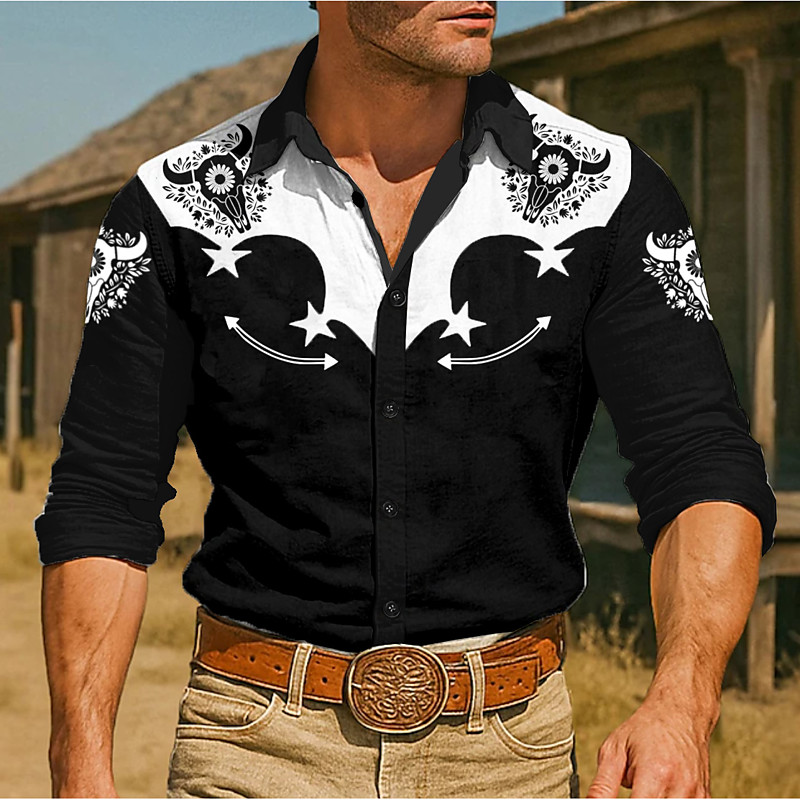 Men's Floral Print Cow Print Flowers Shirt Western Shirt Cowboy Shirt Long Sleeve Vintage Retro Outdoor Vacation Spring Fall Turndown 3D Print Linen Like Shirt Black Burgundy Brown Dark Blue