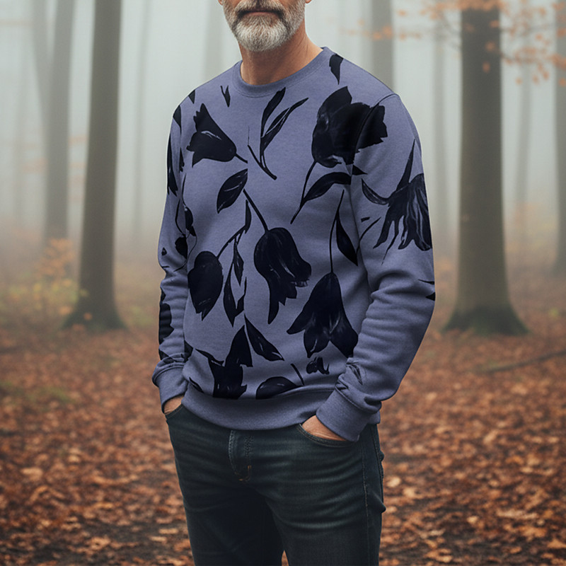 Men's Printing Flower / Plants Sweatshirt Sweatshirts Long Sleeve Sweatshirt Crewneck Vintage Retro Print Holiday Going out Festival Print Fall Winter
