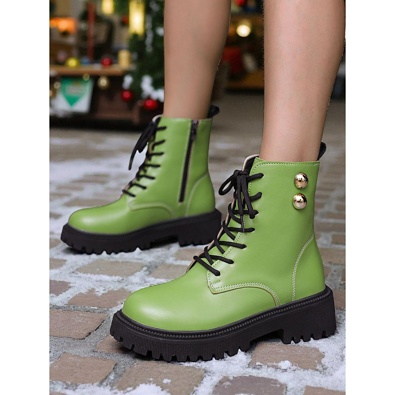 Women's Green Crocodile Print Combat Boots – Trendy Lace-Up Ankle Boots for Street Style, Outdoor and Fall Fashion