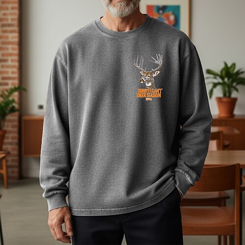 Per uomo Maglia Felpa con cappuccio invecchiata Aalbicocca Nero Rosa Verde militare Marrone Girocollo Renna Stampato Quotidiano Ferie Uscire 100% Cotone Vintage Retrò Casual Autunno Inverno