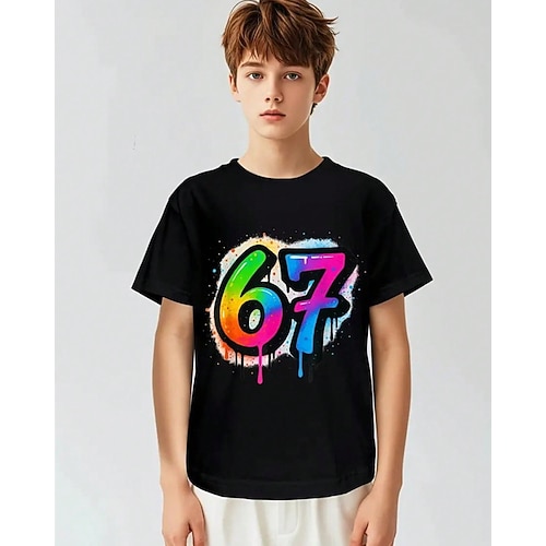 100% Cotone Bambini Ragazzi Nero Grafico Gergo divertente 67 Maglietta Blusa Girocollo Manica Corta All'aperto Abbigliamento Quotidiano Moda Streetwear Designer Stampato Estate