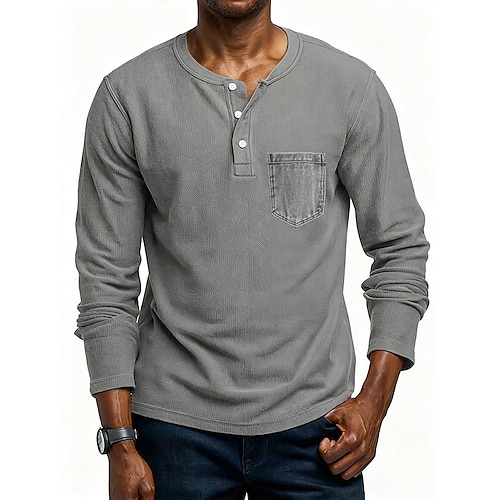 Per uomo Maglietta Maglia Henley Camicia 100% cotone lavaggio acido Manica Lunga Tinta unica Vintage Casual Puro Henley All'aperto Casual Casuale Primavera Autunno Primavera Autunno Nero Grigio Blu