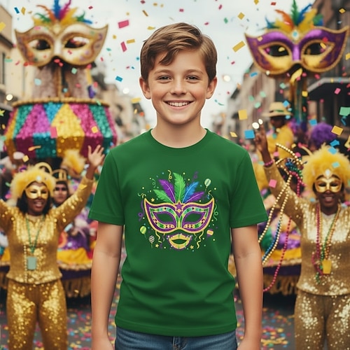 Cotone 100% Cotone Carnevale Bambini Ragazzi Blu Nero Bianco Grafico Maschera Martedì grasso Maglietta Blusa Girocollo Manica Corta All'aperto Abbigliamento Quotidiano Moda Streetwear Designer Stampa