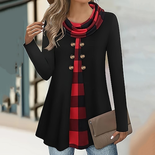 Per donna Blusa Semplice Casual Manica Lunga Collo Alto Top Regolari Quotidiano Verde primavera Rosa Blu Primavera Autunno
