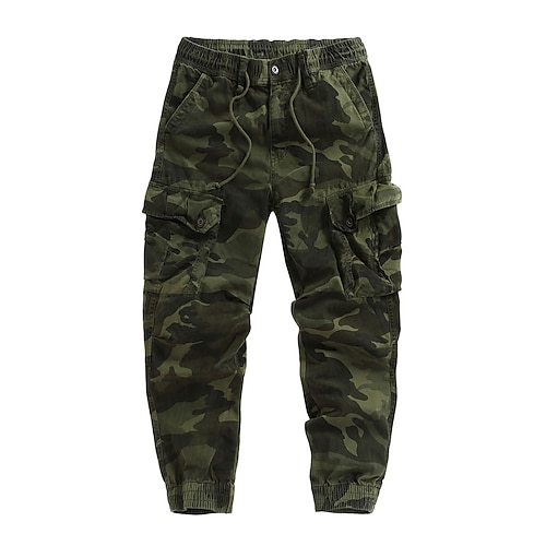 Herren Cargo-Hosen Hose Kordelzug Elastischer Bund Mehrere Taschen Tarnung Winddicht tragbar Outdoor Täglich Campen und Wandern Streetwear Stilvoll Armeegrün Khaki Mikroelastisch