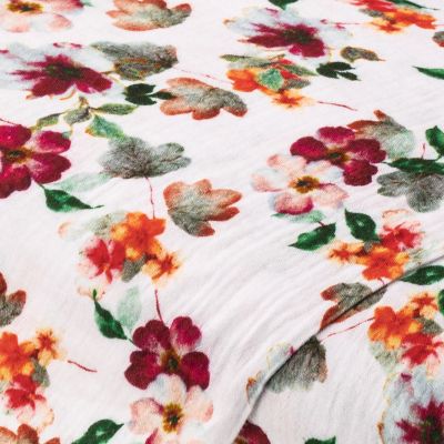 Tissu mousseline/double gaze à impression numérique "fleurs", blanc/rose/rouge