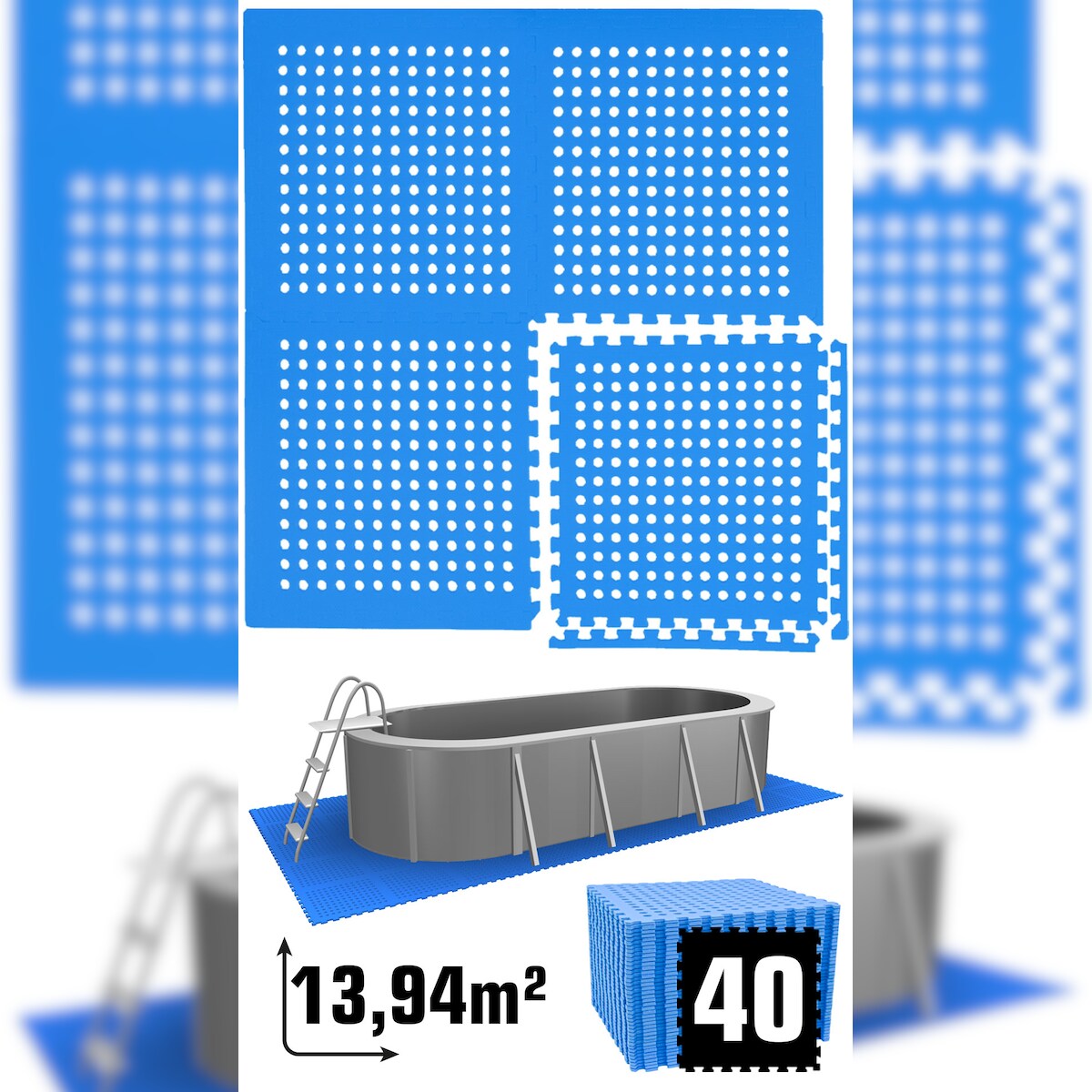 13,9 m² Poolunterlage - 40 EVA Matten 62x62 - Unterlegmatten Set Pool Unterlage