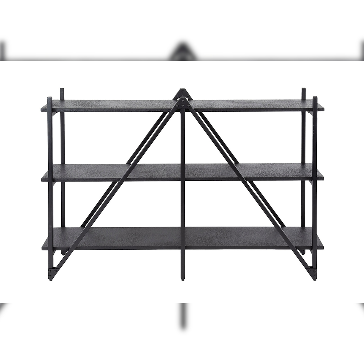 Lowboard LEONIQUE "Kasai", schwarz (wallnut columbia, schwarz hgl), B:199cm H:52cm T:48cm, FSC-zertifizierter Holzwerkstoff, Glas, MDF, Melamin, Metall, Sideboards, Lowboard, Breite 199 cm, mit 1 Schublade und 2 Türen