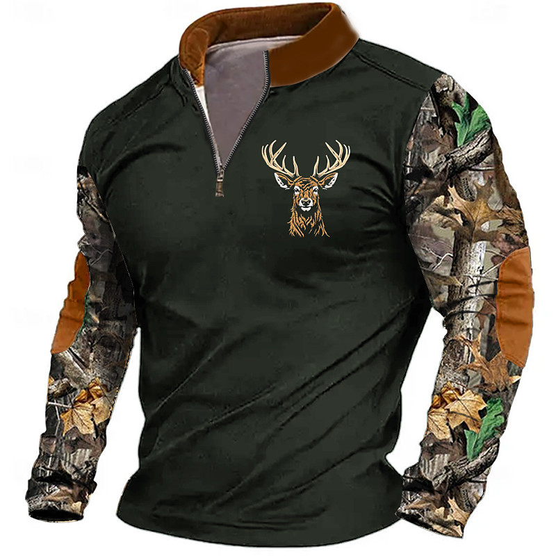 Men's Deer Sweatshirt Zip Sweatshirt Long Sleeve Sweatshirt Quarter Zip Daily Basic Print Sports Outdoor Travel Zip Up Spring Fall